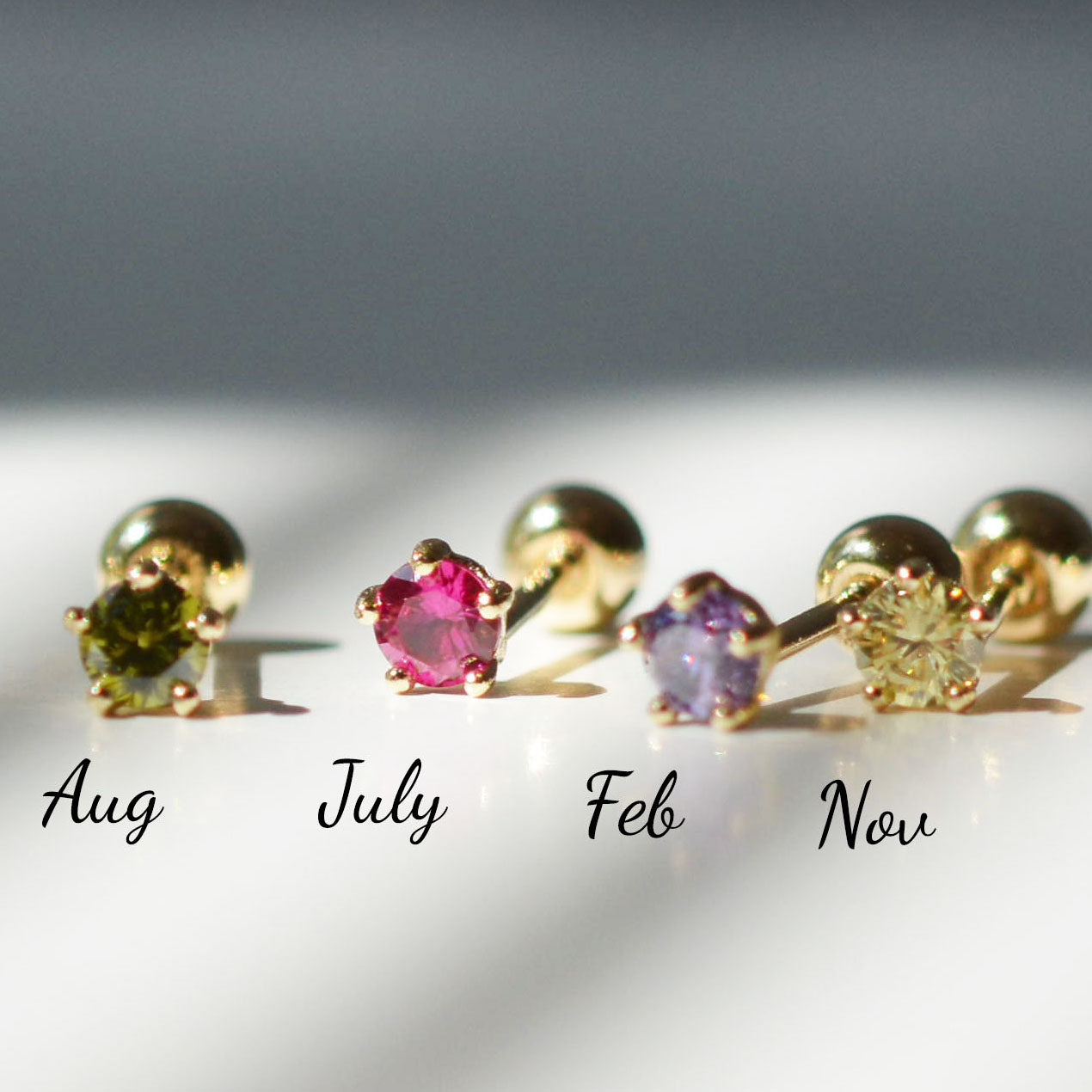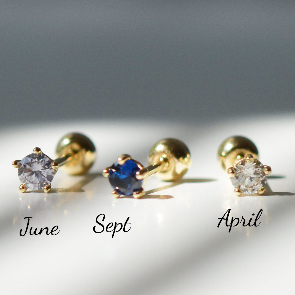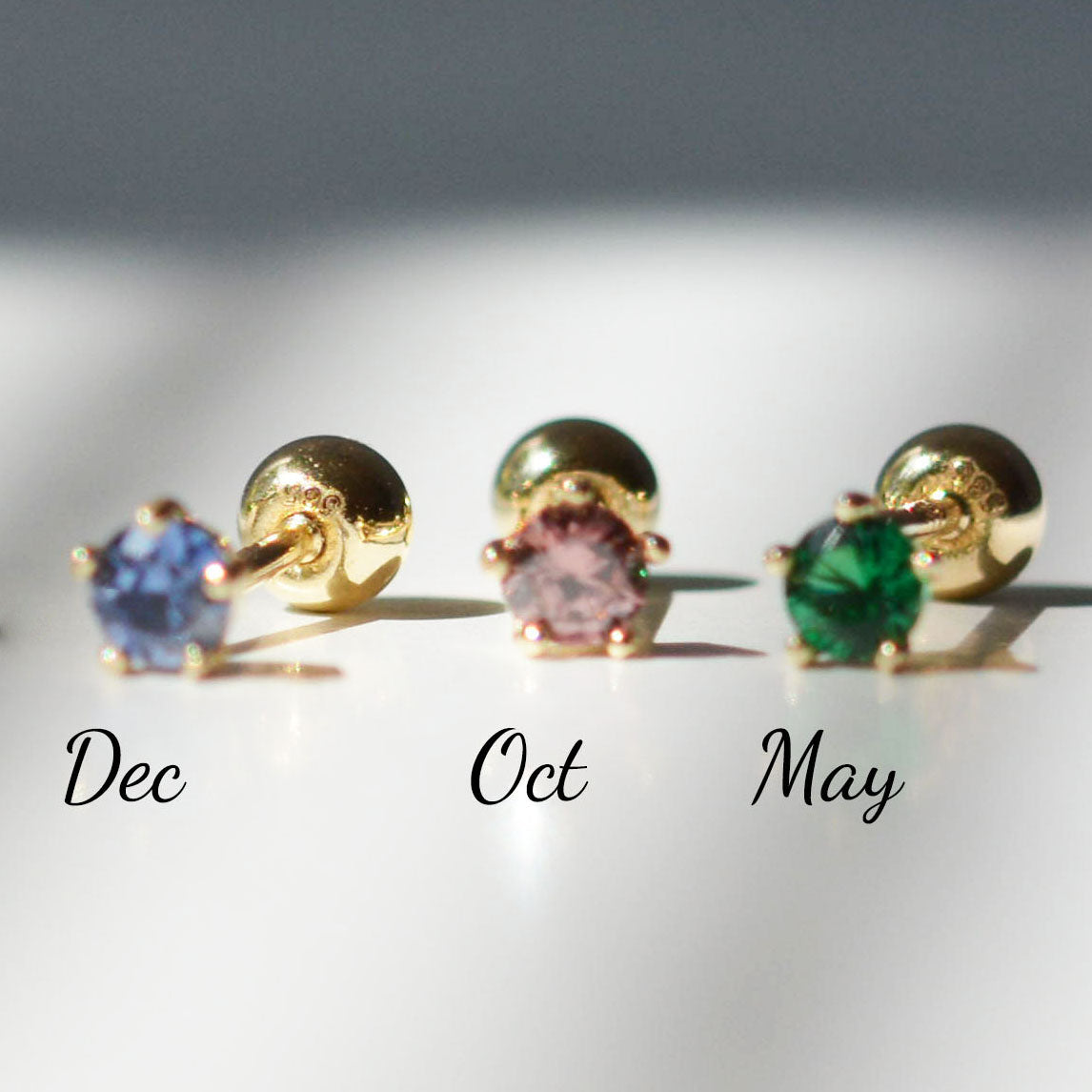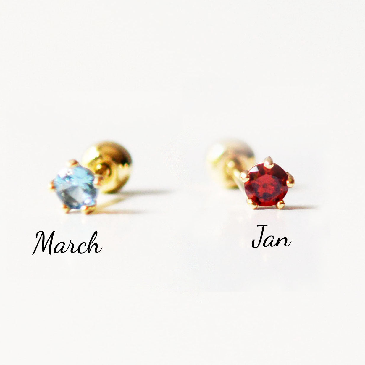 14K Solid Gold Birthstone Stud Earrings, Dainty 14K Gold Screw Back