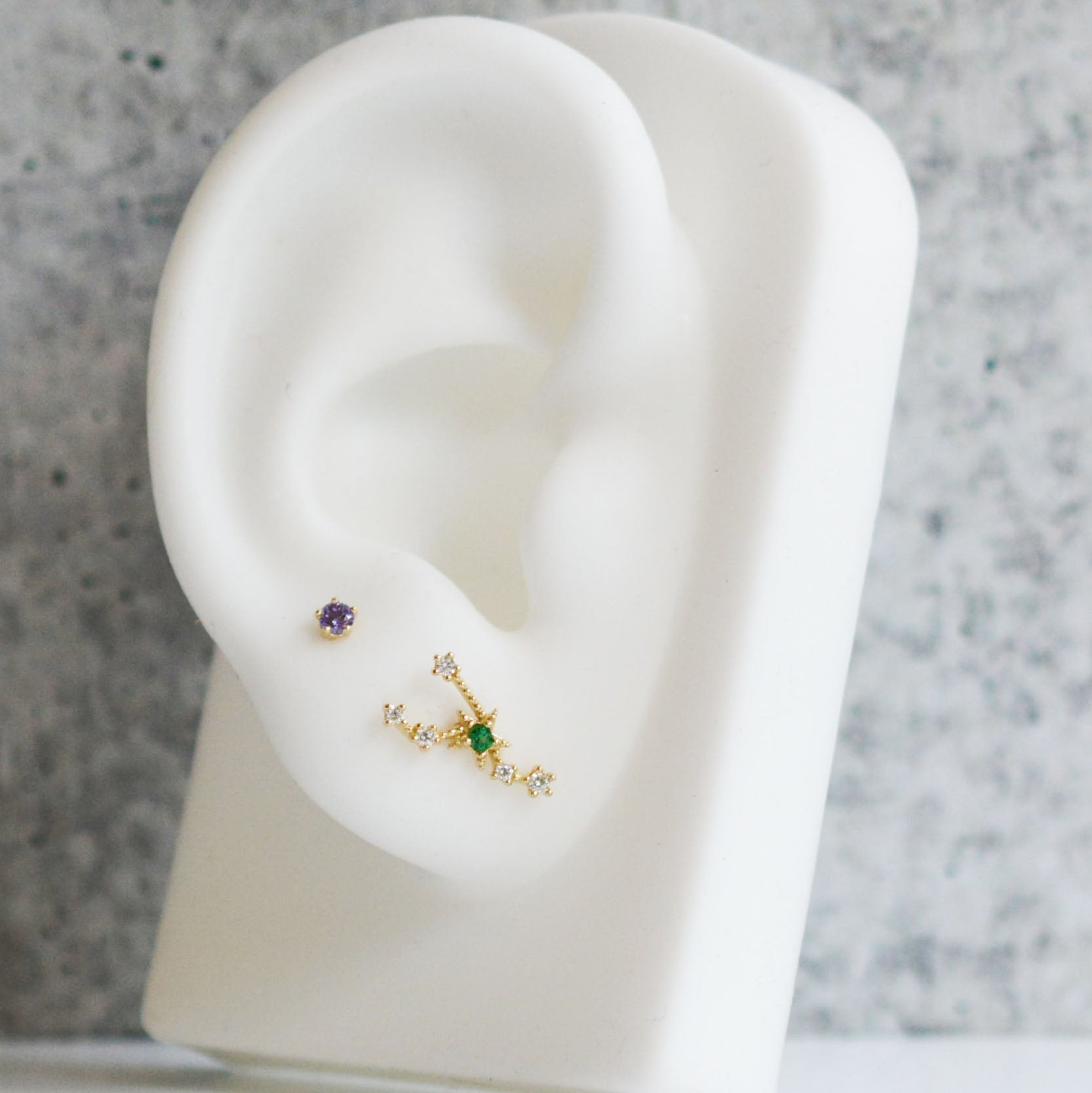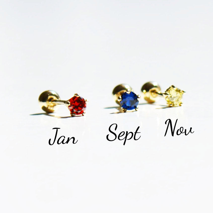 These tiny birthstones are entirely made with 14K solid gold. These are perfect earrings for everyone! They are small, simple and elegant! You can pair it with other stud earrings or hoops!!