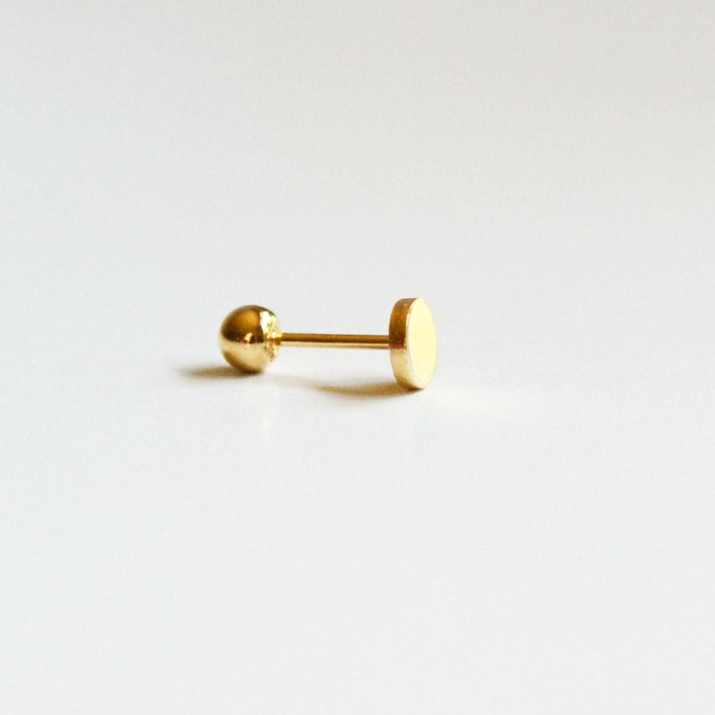Classic 14 K solid gold stud earring. This is for everyday and everywhere. Also fits any mood or occasion. Great mini coin stud to wear 1st, 2nd or 3rd piercing.