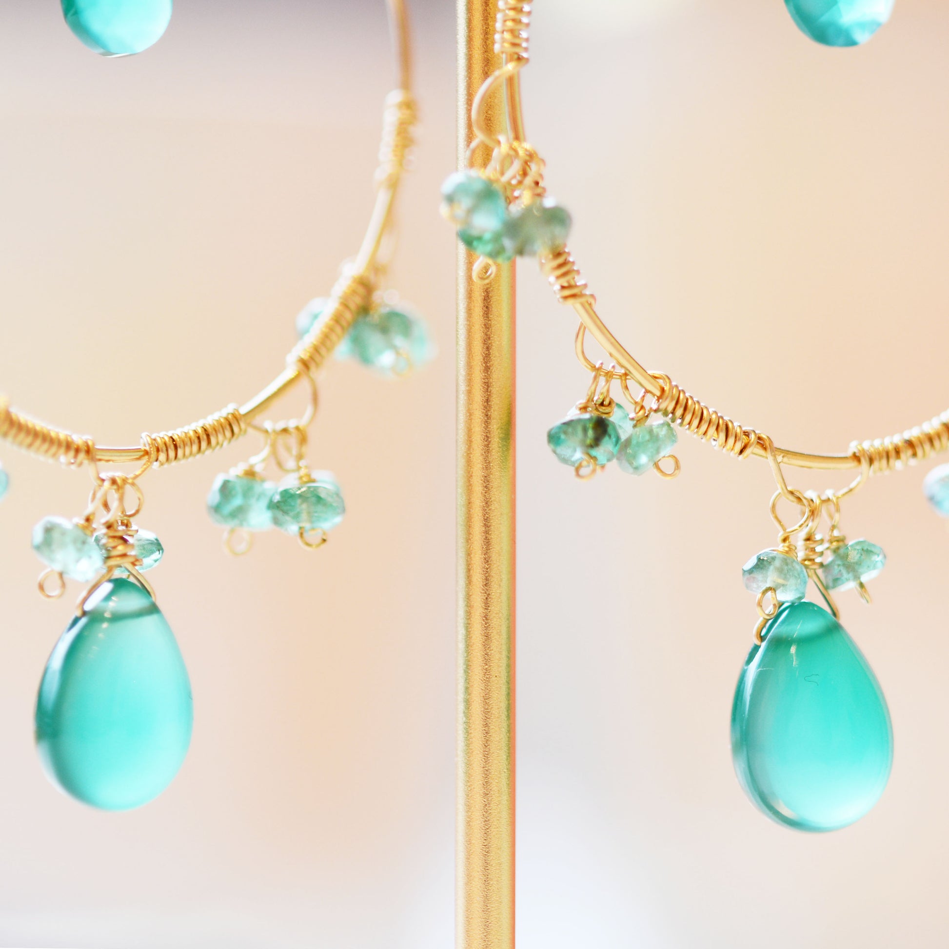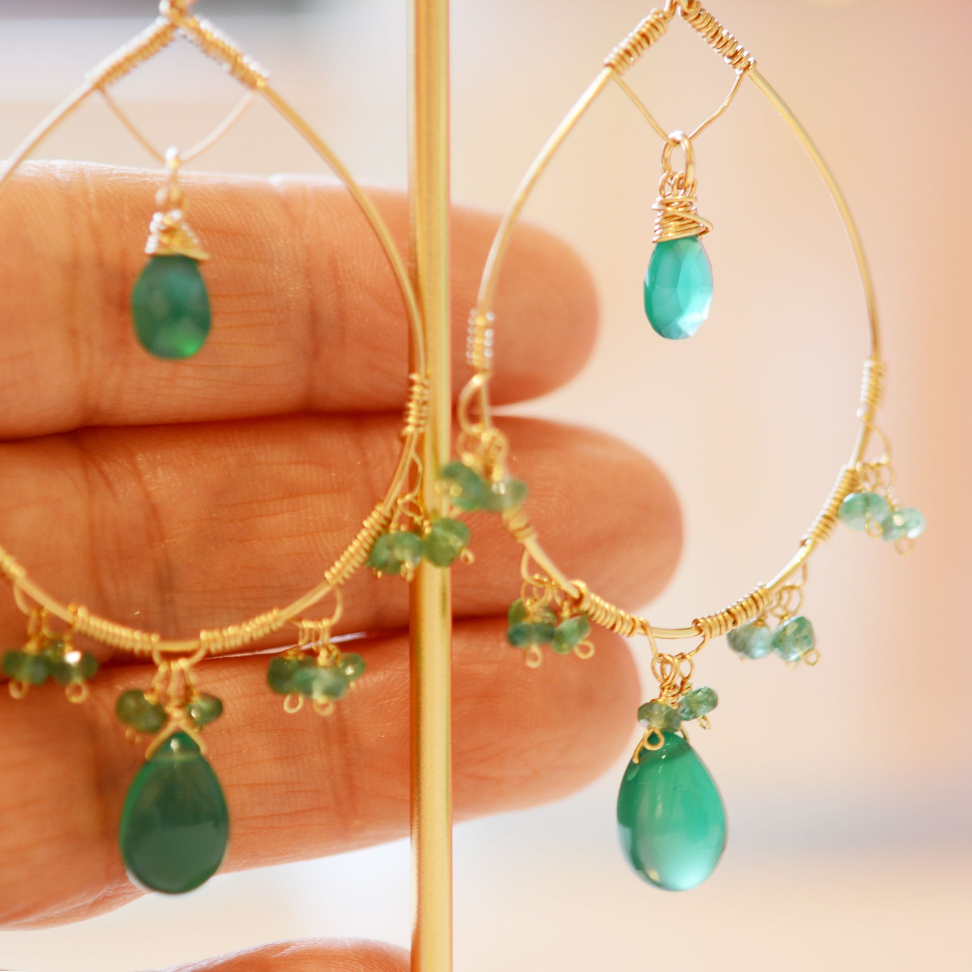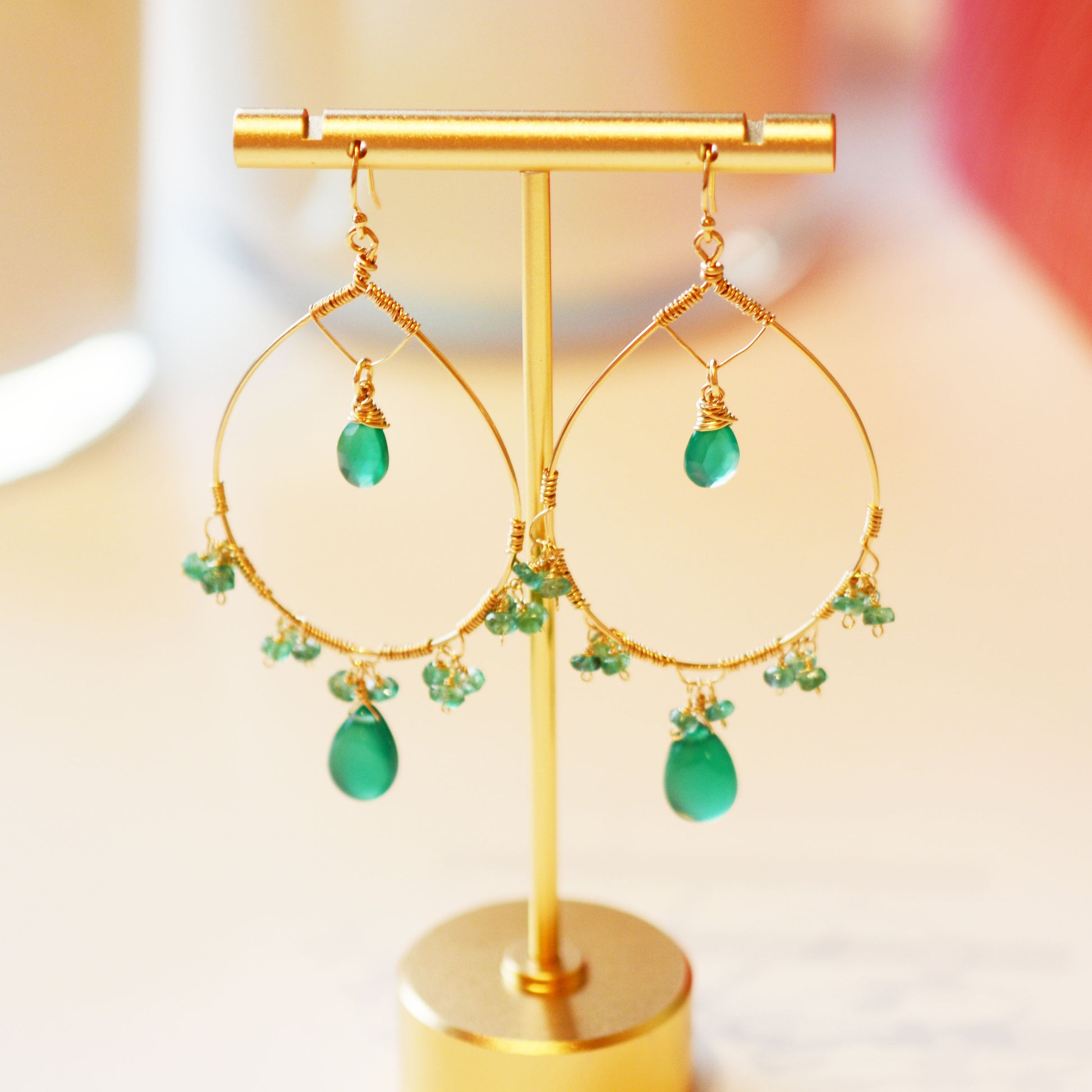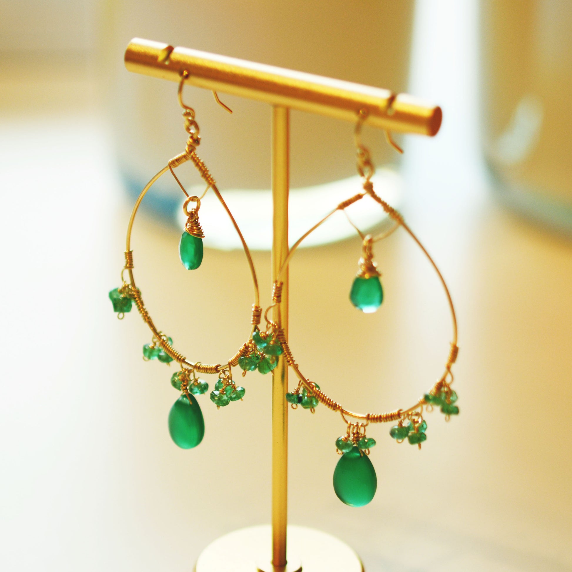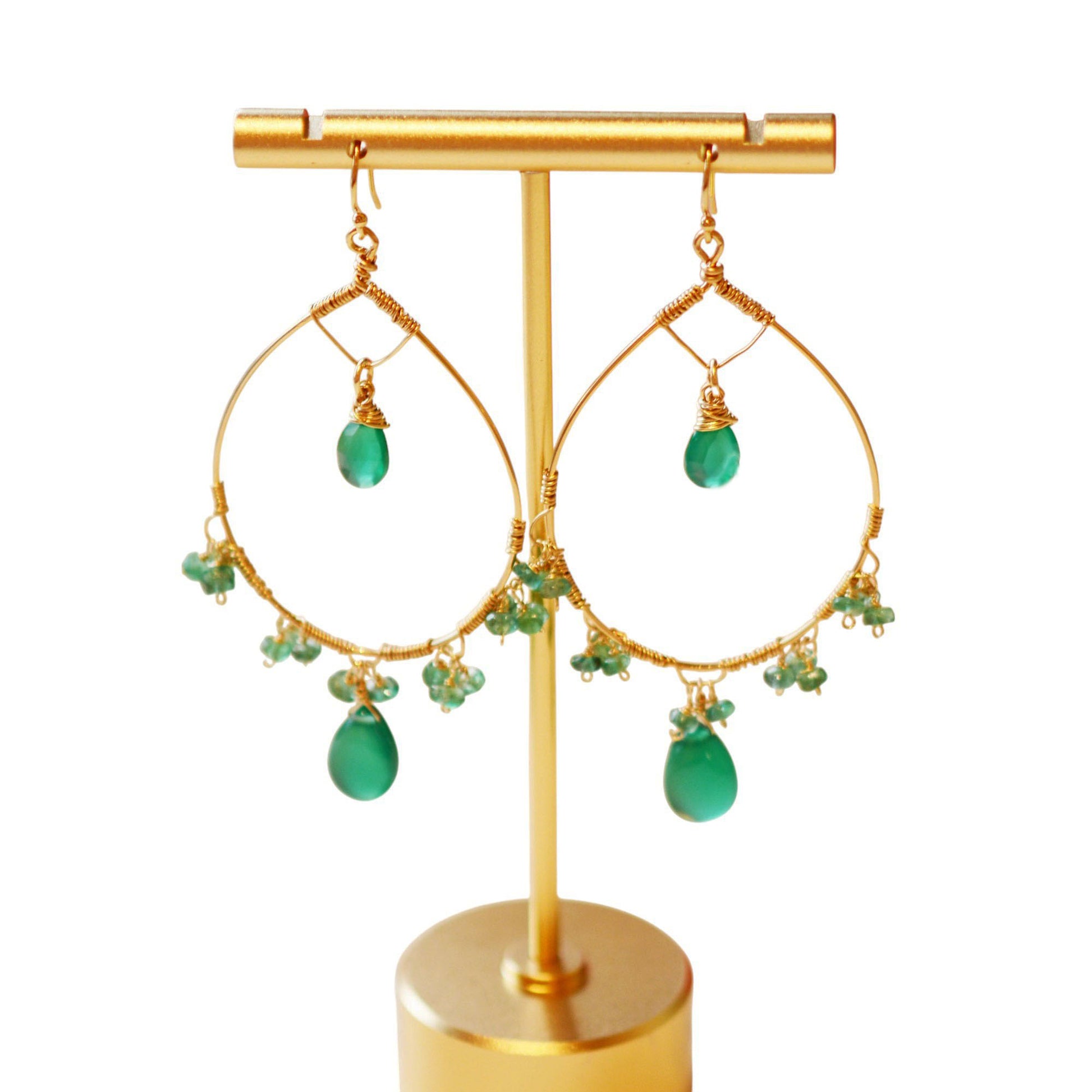 18K Gold Fill Emerald and Green Onyx Hoop Earrings