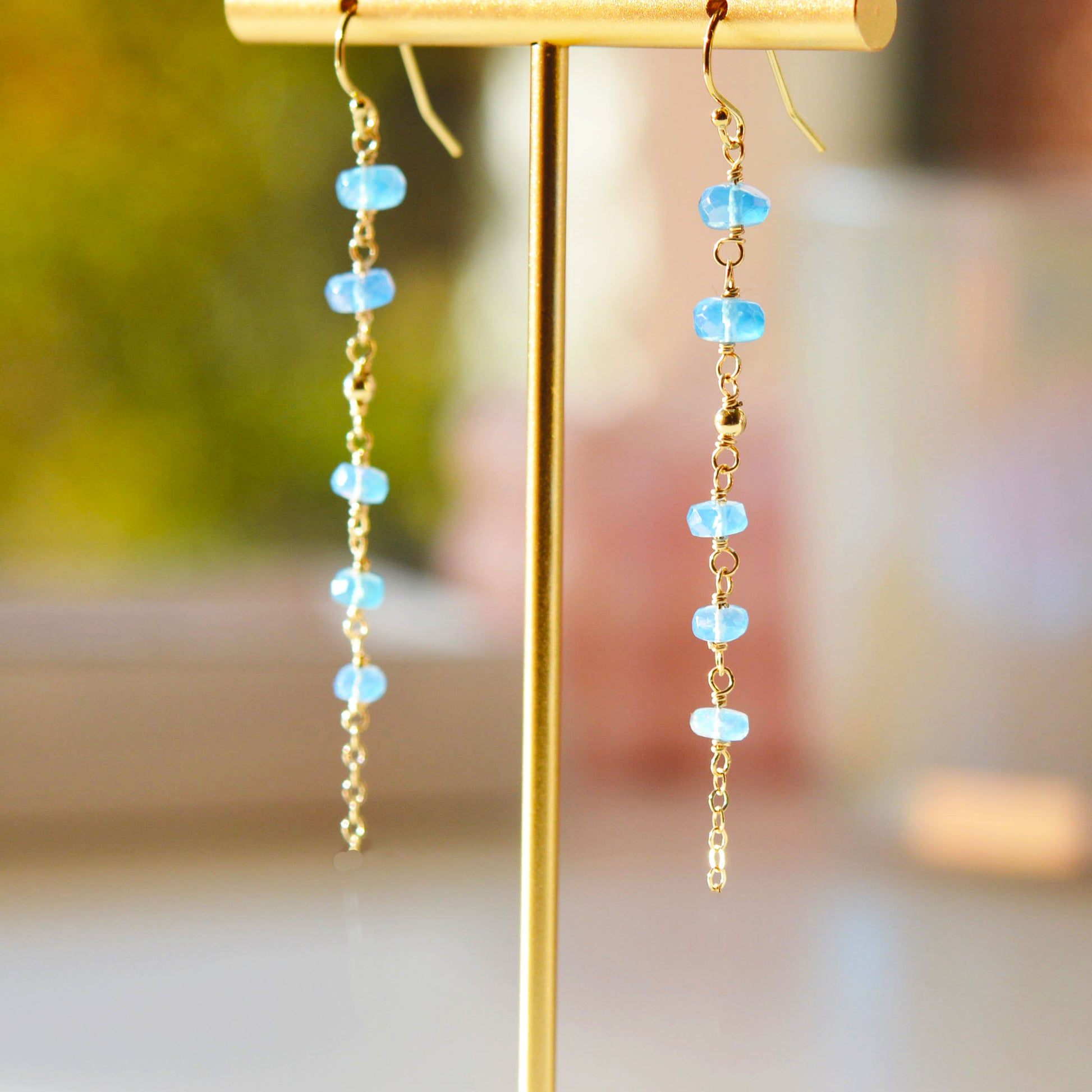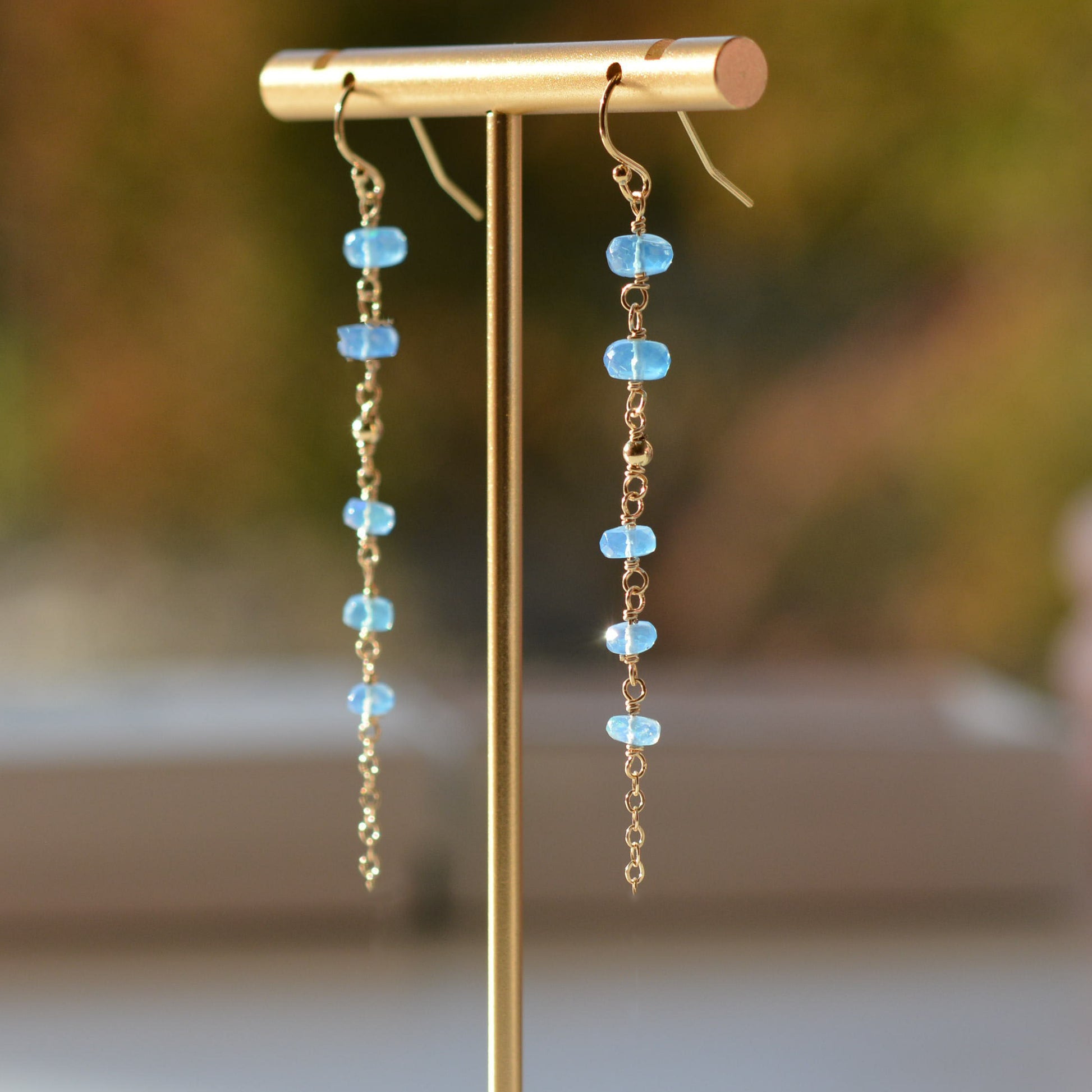Step into a world of timeless elegance with these exquisite handmade blue opal matching long dangle earrings, designed to add a touch of celestial charm to your everyday attire.