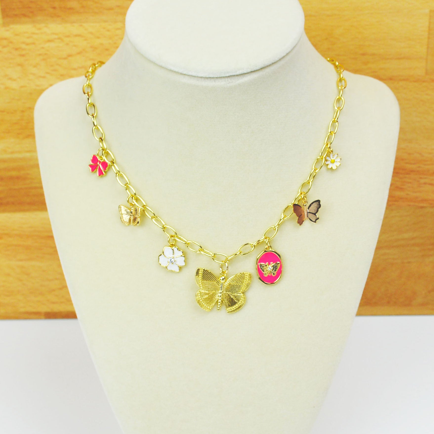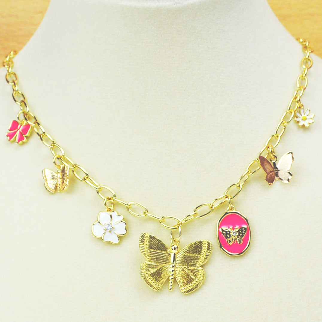 Butterfly & Flower Charm Necklace | Handmade 18K Gold-Fill
