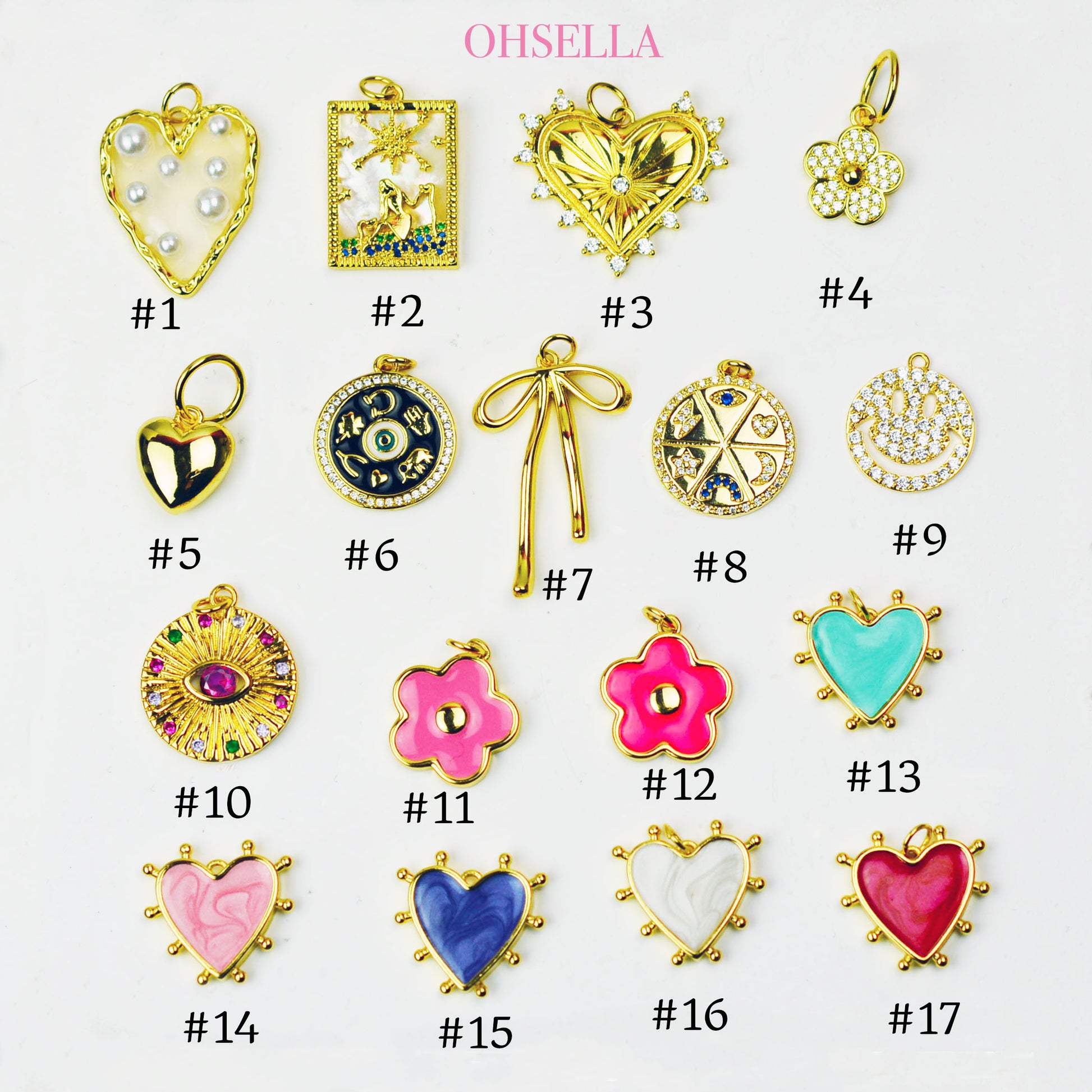 Default charm is Sparkly Daisy Charm but other charms are available upon request as you see in the last photo. Please indicate the number of the charm you wish at check out. If I don't see any indication for different charm, I will send it out with the default daisy charm.