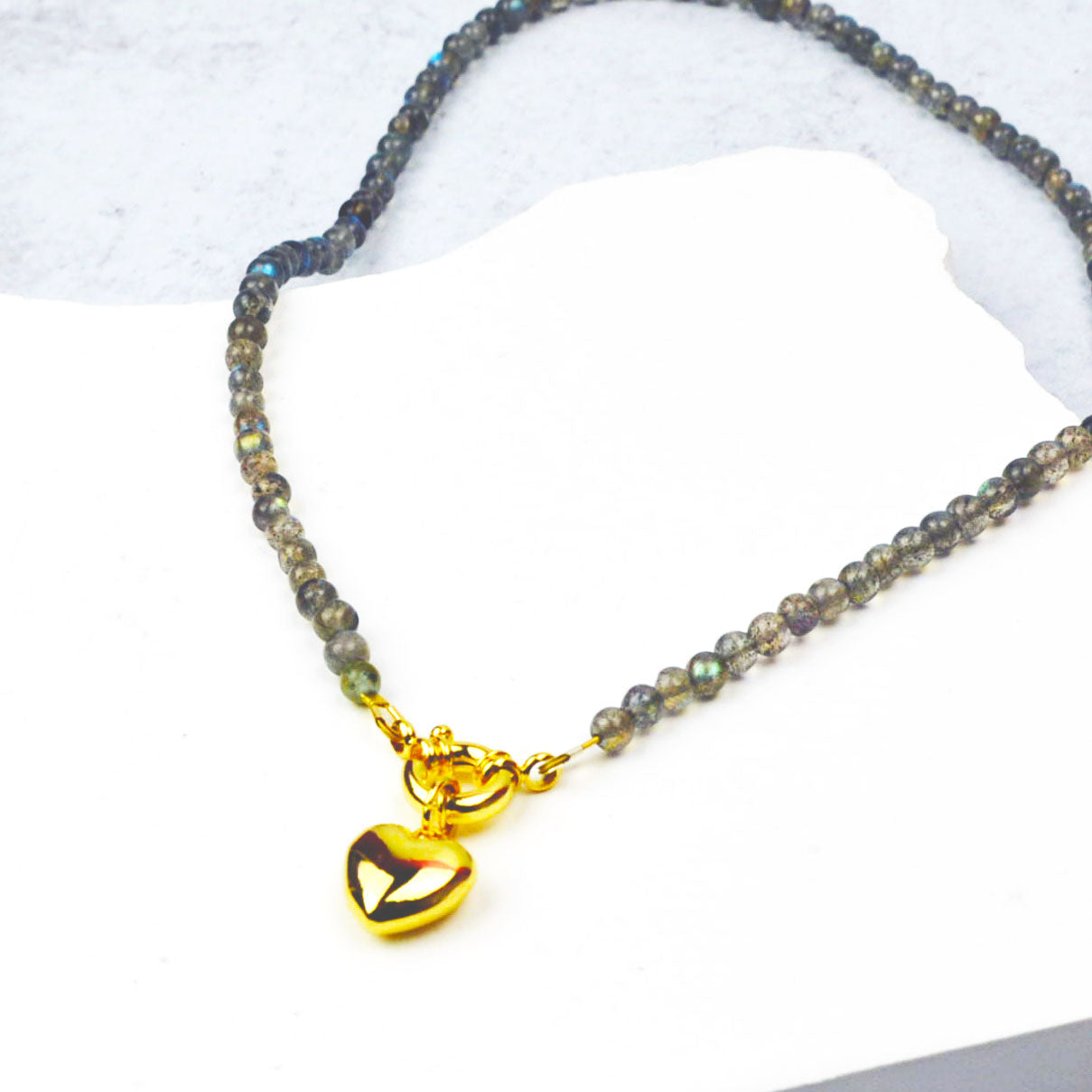Delicate Labradorite Beaded necklace with 24K Gold-Filled Tailor Clasp