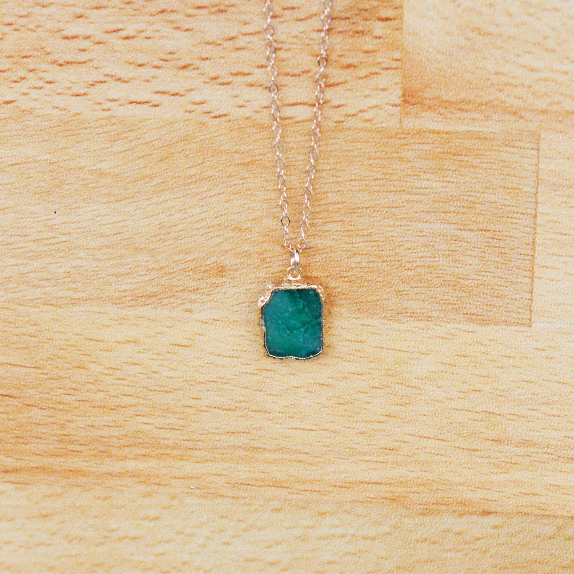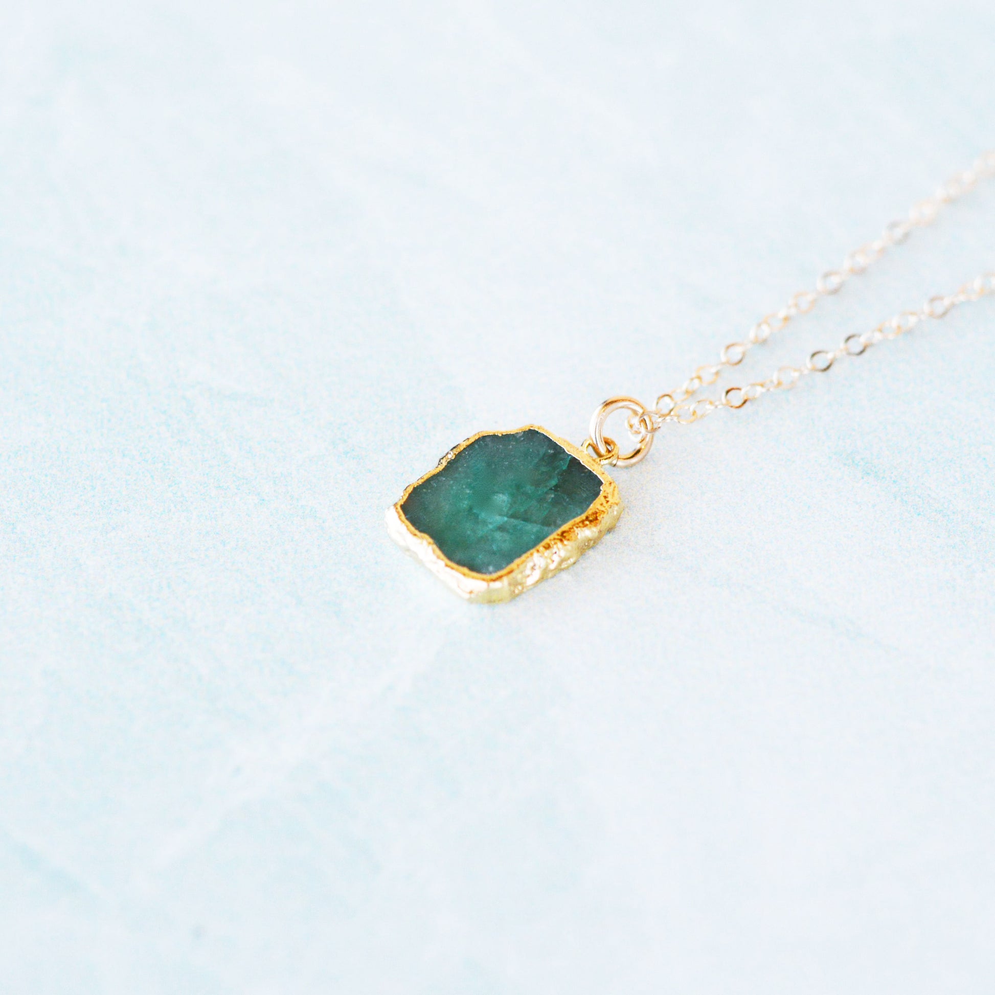 This raw cut emerald slice pendant is as nature made it. This pendant can be worn layered or on a bare neck, day to night.