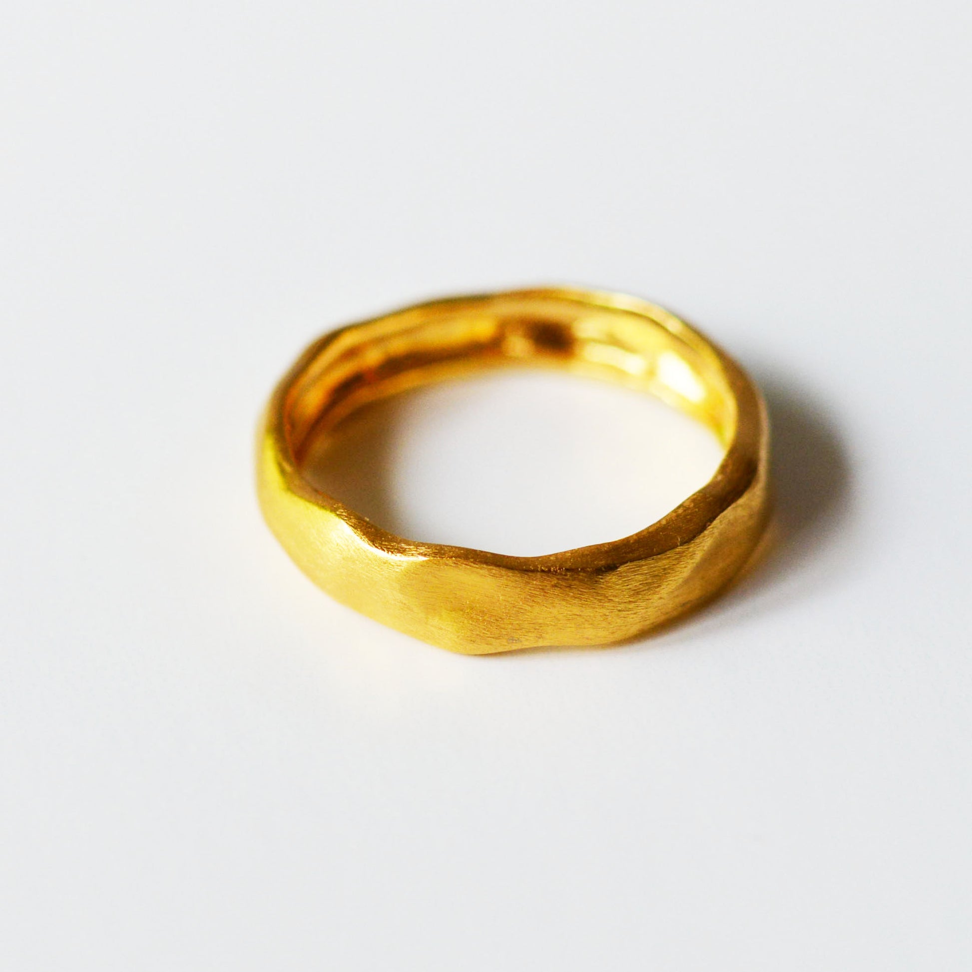 Classical and minimalist hammered 18K gold Vermeil (18K Gold Over Sterling Silver) Ring. This ring will enhance any outfits and especially stylish when stacked or worn with other rings.