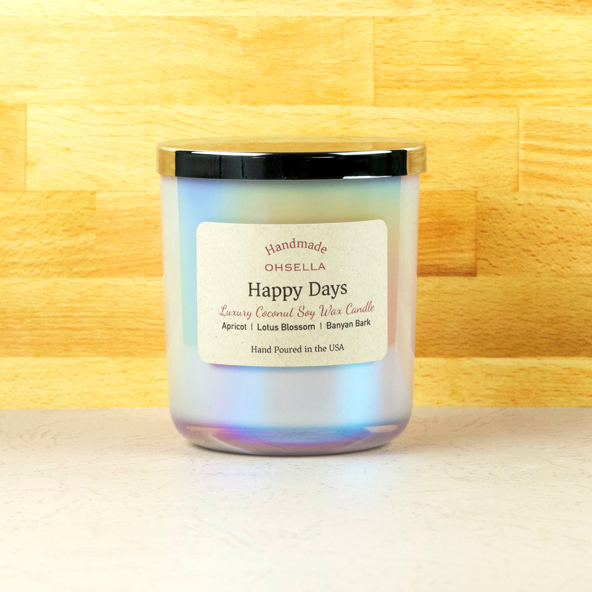 Immerse yourself in the enchanting glow of this artisanal candle, hand poured in small batches in Westport CT and infused with the delicate essence of apricot, lotus blossom, and banyan bark. Also has a little sparkles on the top. You can inhale and exhale, this non-toxic, made with perfume grade fragrance oil will enhance your mood to joyous and uplifting but relaxing at the same time.