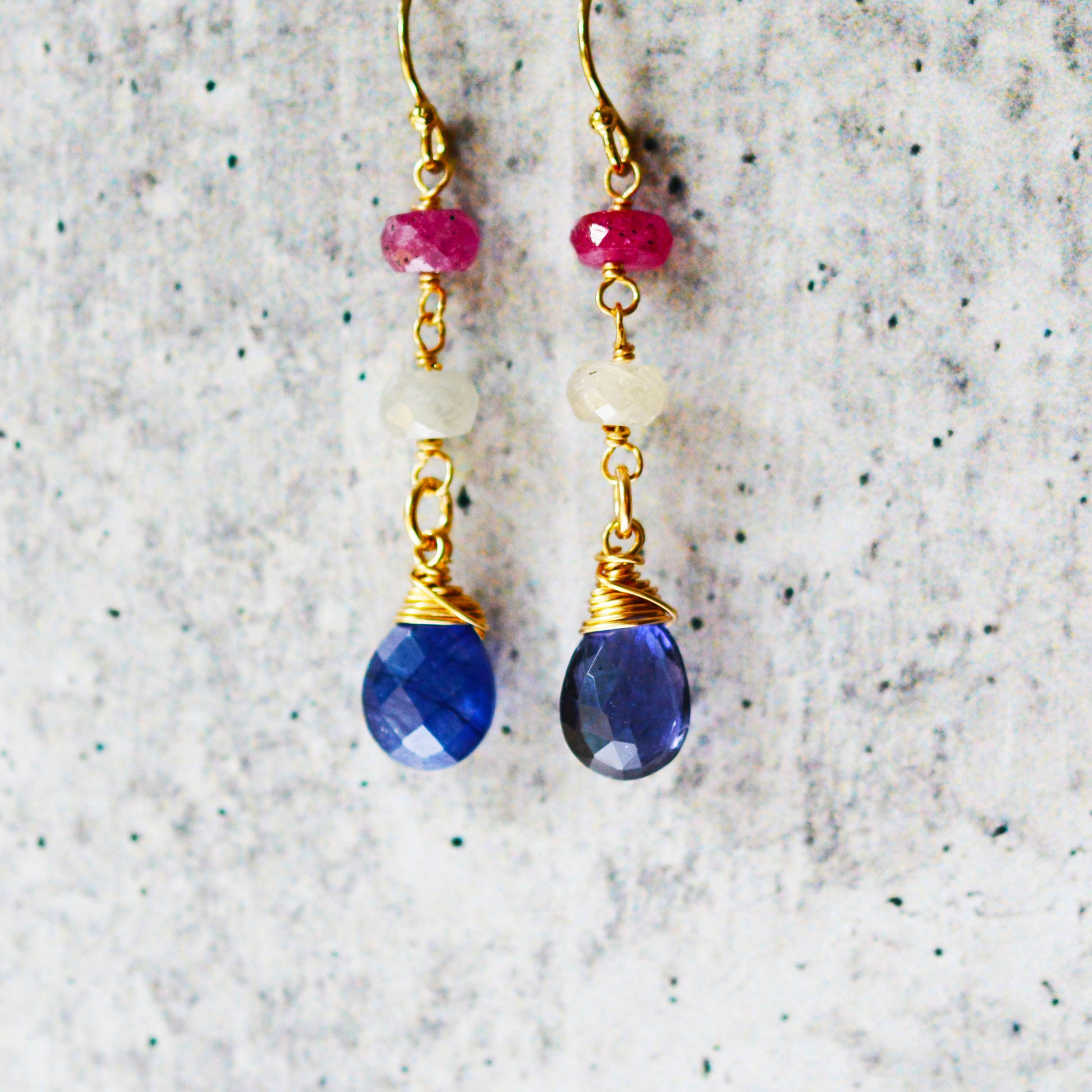 The beautiful mesh of rubies & sapphires make these delicate earrings a piece from day to night wear.