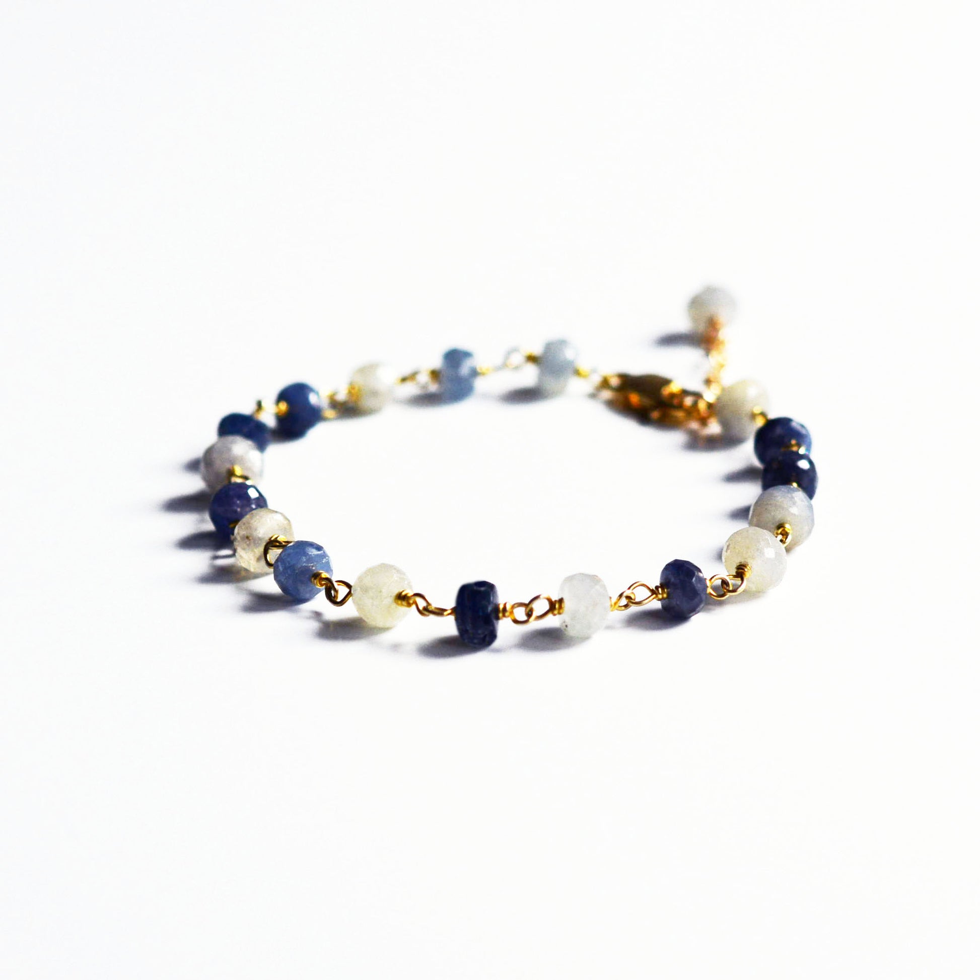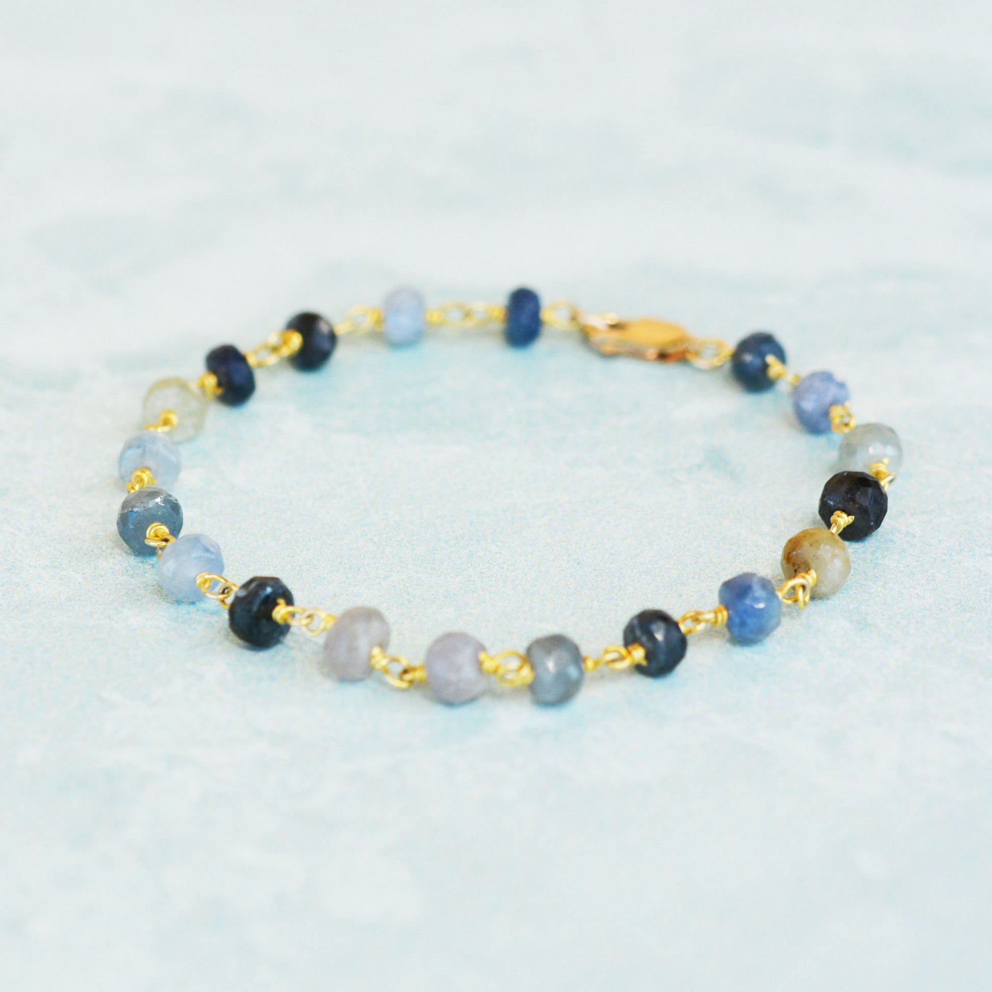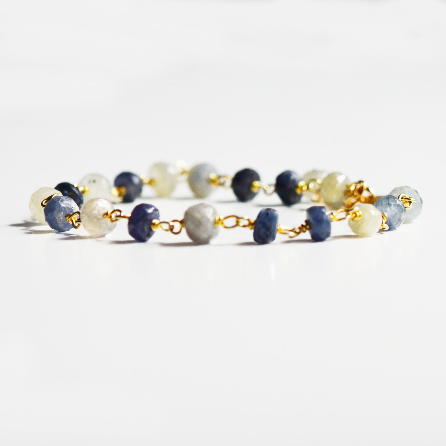 This beauty is made with natural shaded sapphire gemstone beads and god fill wires and findings. Great to wear by itself or to wear with other bracelets.