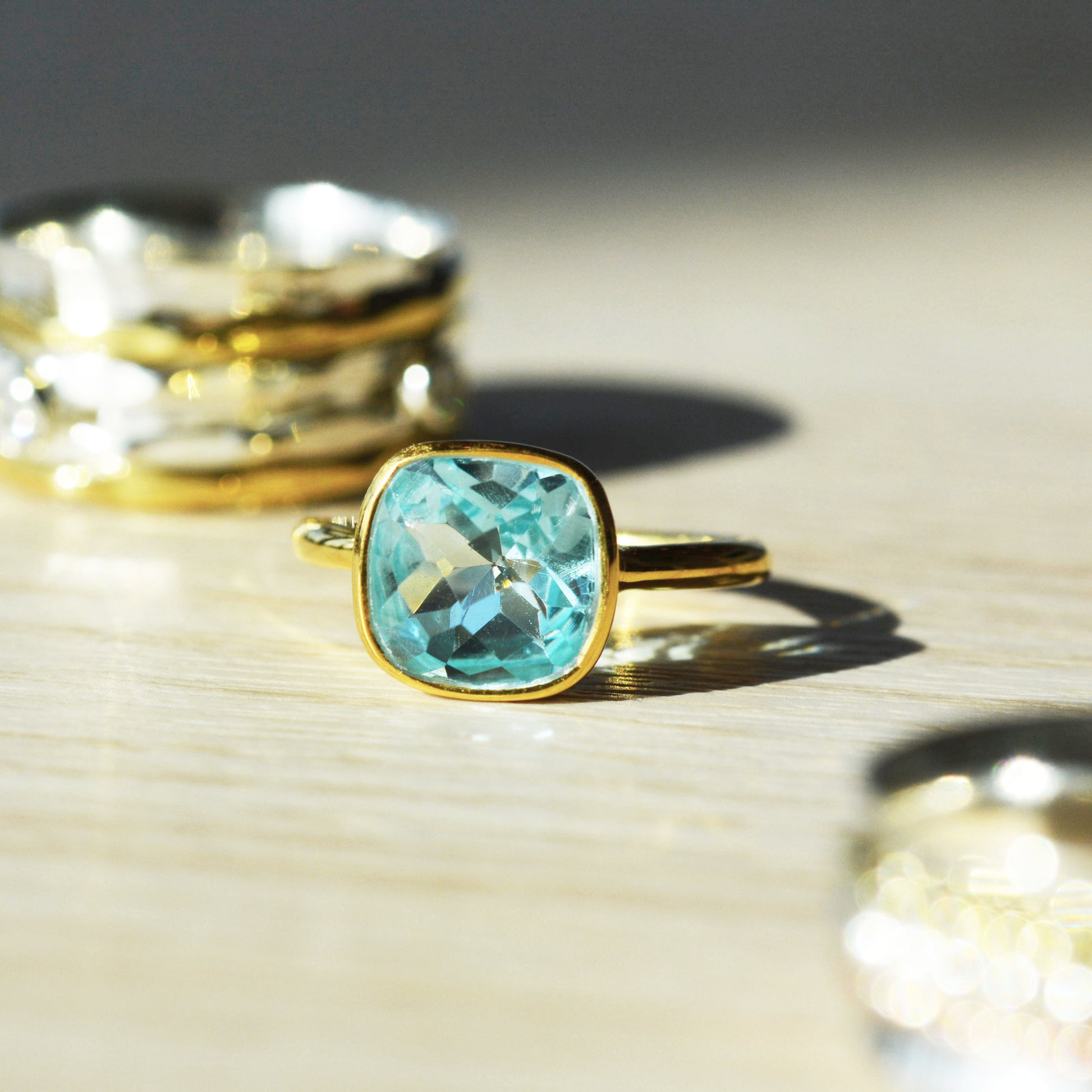 Gorgeous 18K Gold Vermeil rings in Amethyst, Citrine, Peridot and Turquoise. Great to wear for everyday or for night out. They layer well with other rings and by itself.