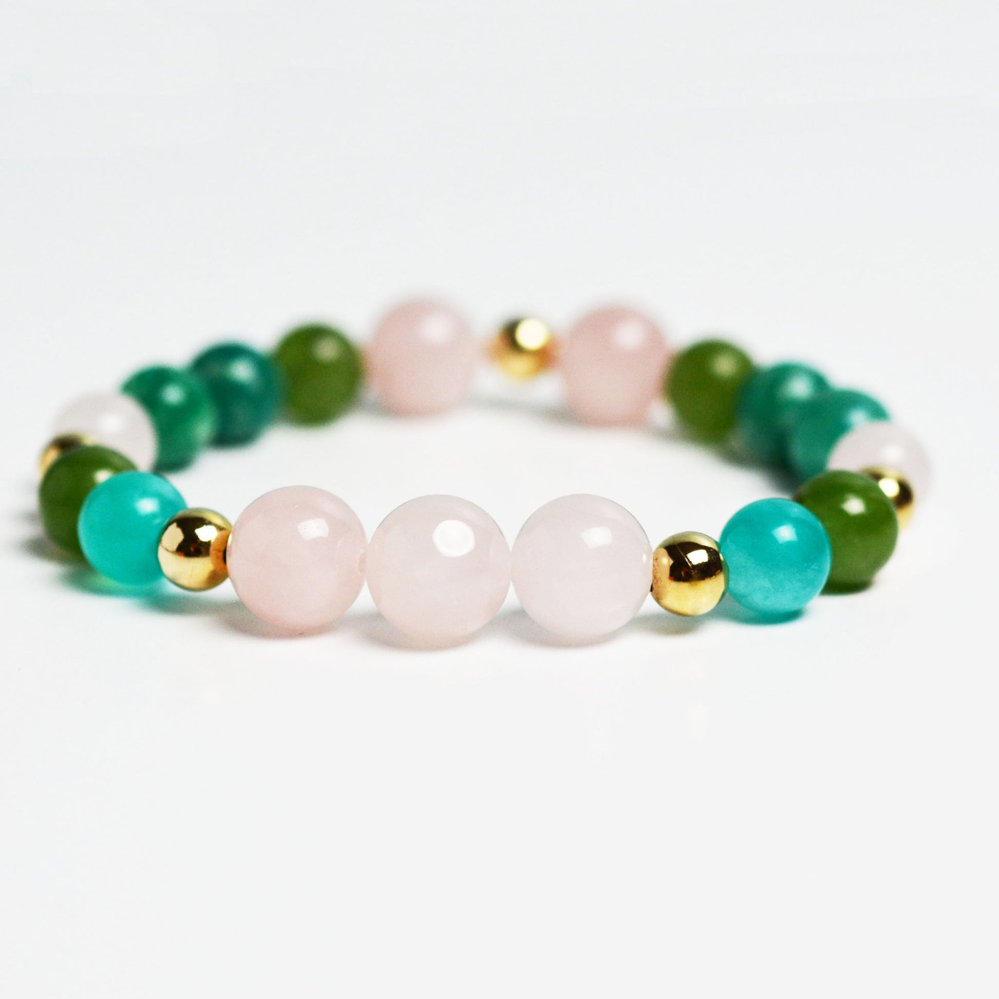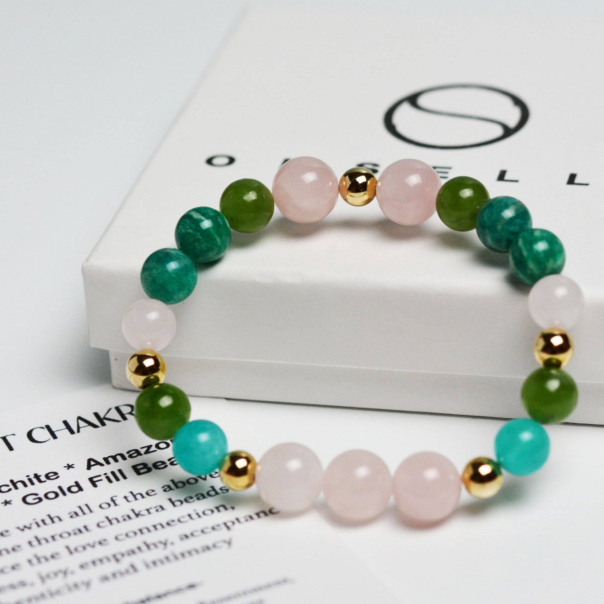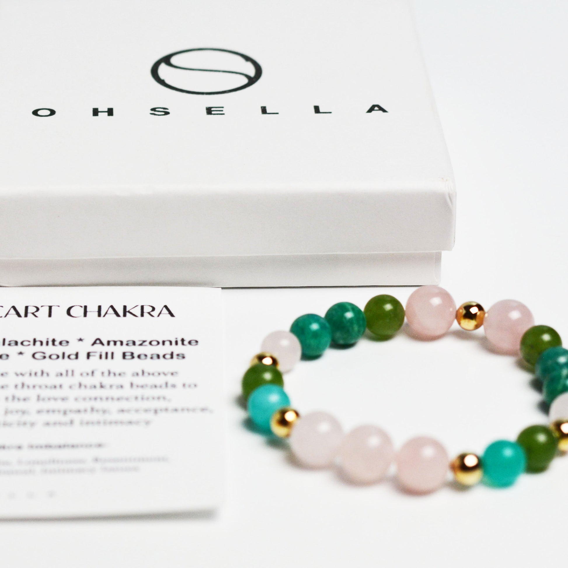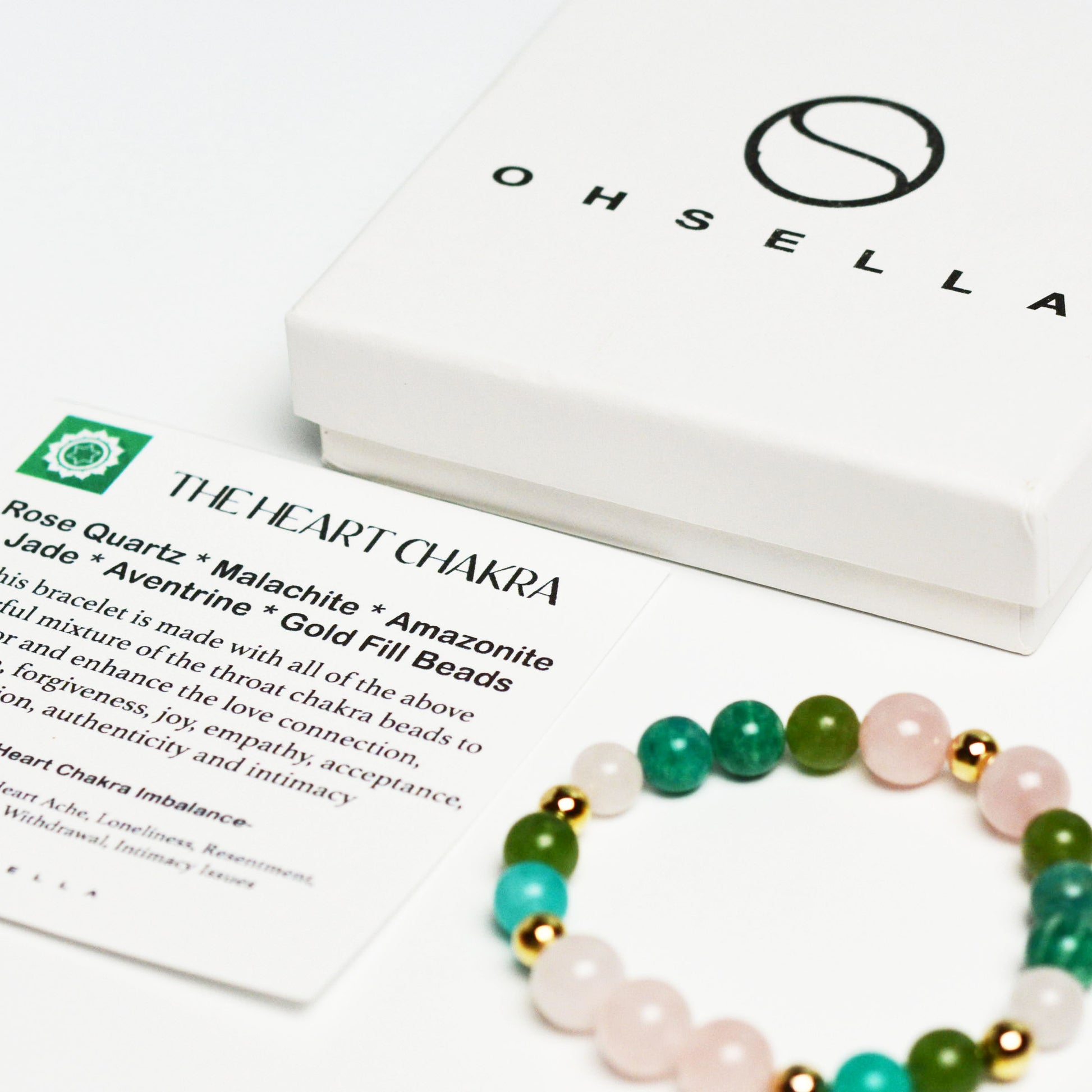 The Heart Chakra bracelet contains Rose Quartz, Malachite, Amazonite, Jade, Aventrine and Gold Fill Beads. This bracelet is made with a powerful mixture of the heart chakra beads to honor and enhance the love connection, compassion, forgiveness, joy, empathy, acceptance, direction, authenticity, and intimacy.