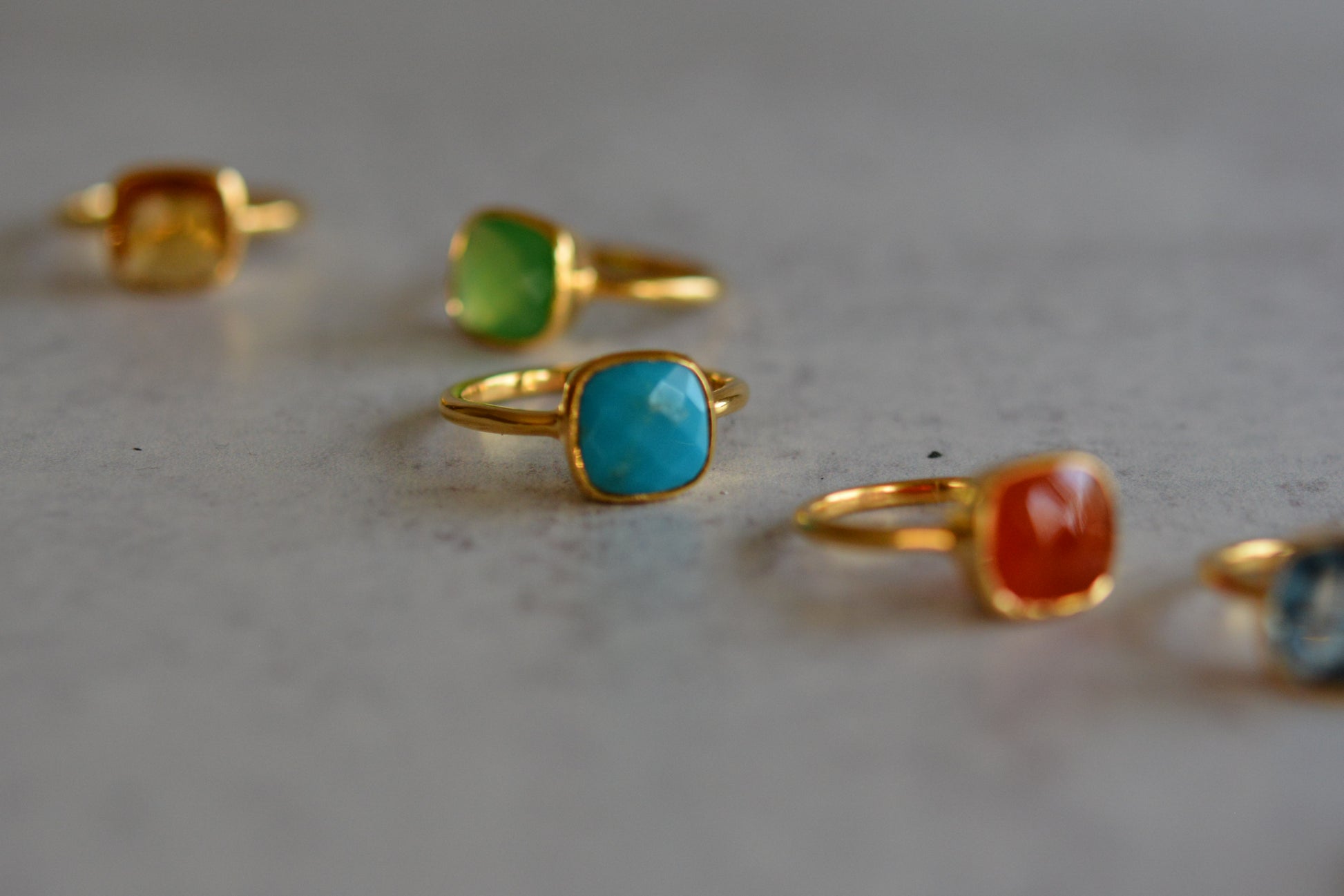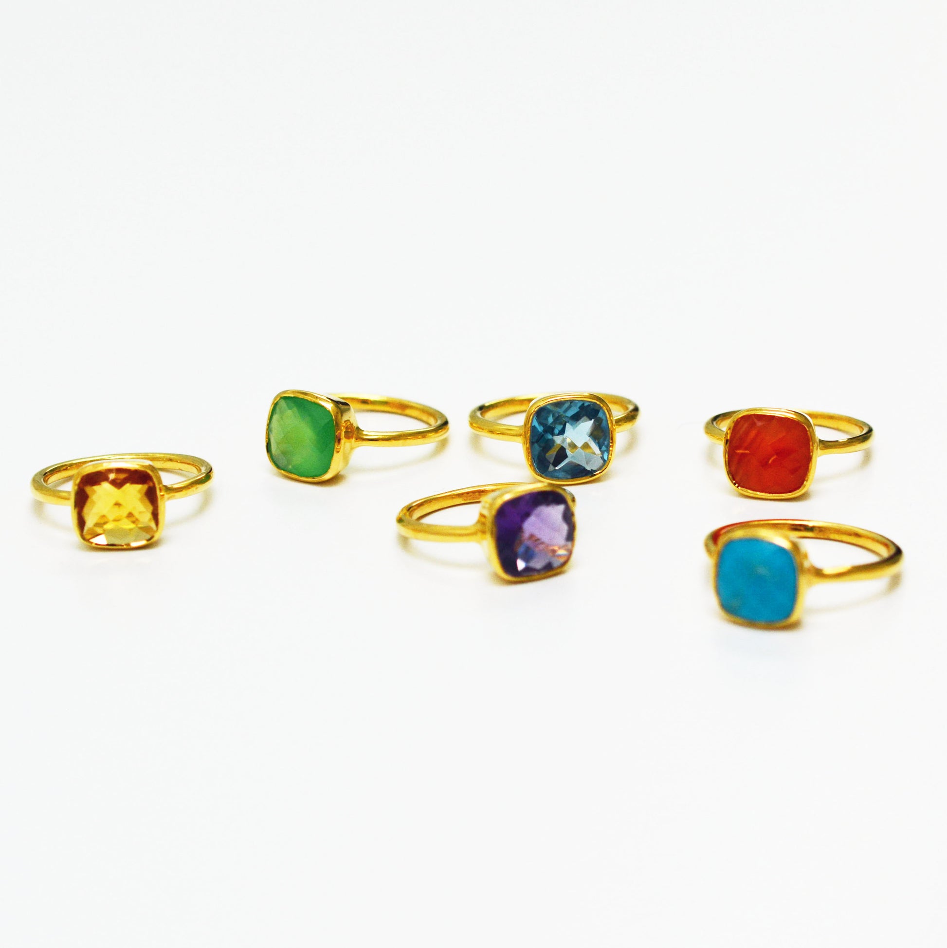 Gorgeous 18K Gold Vermeil rings in Amethyst, Citrine, Peridot and Turquoise. Great to wear for everyday or for night out. They layer well with other rings and by itself.