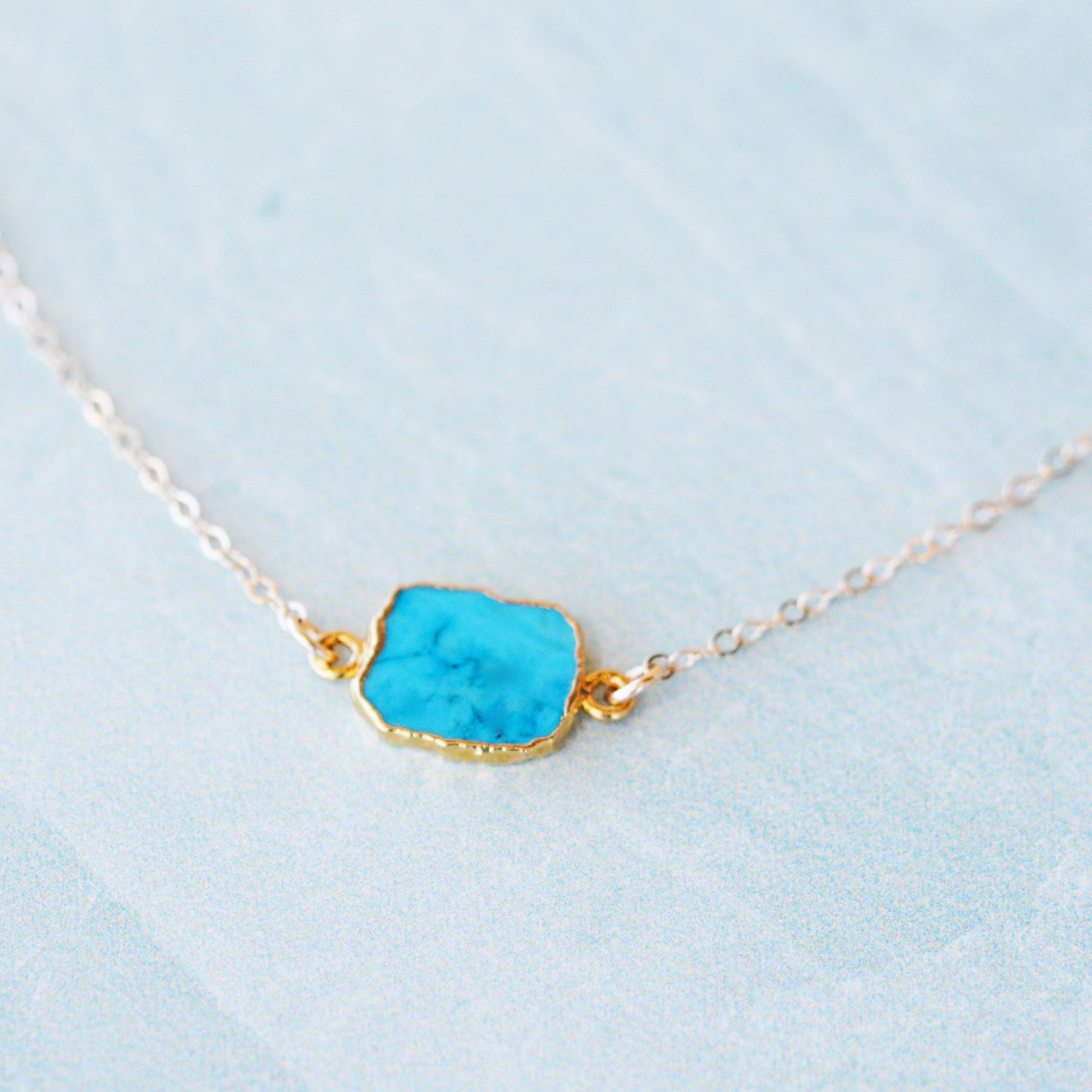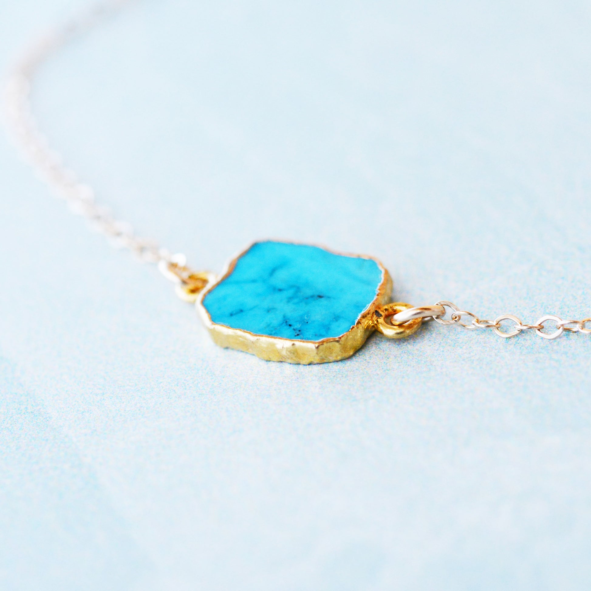 This raw cut turquoise slice pendant is as nature made it. This pendant can be worn layered or on a bare neck, day to night.